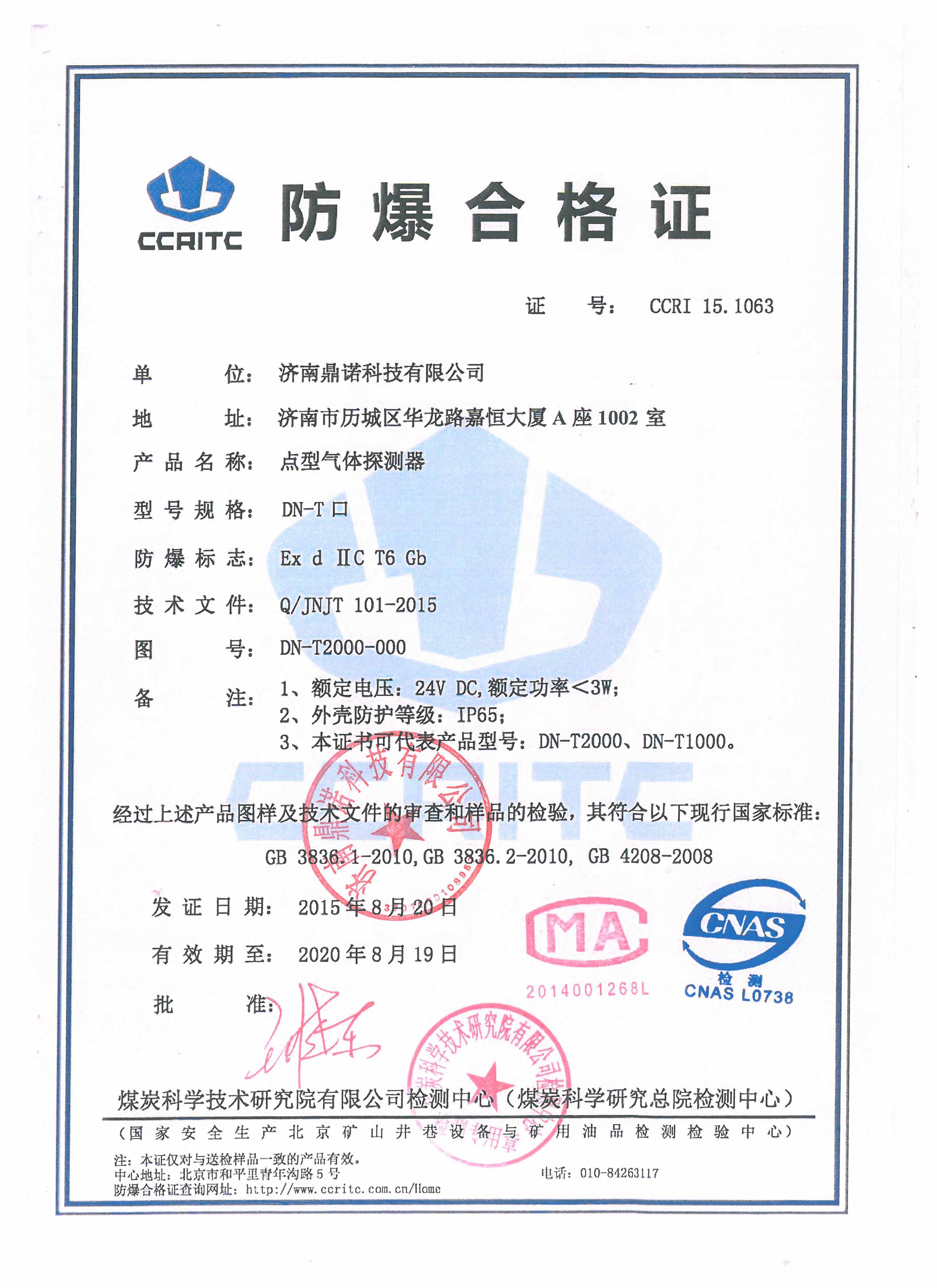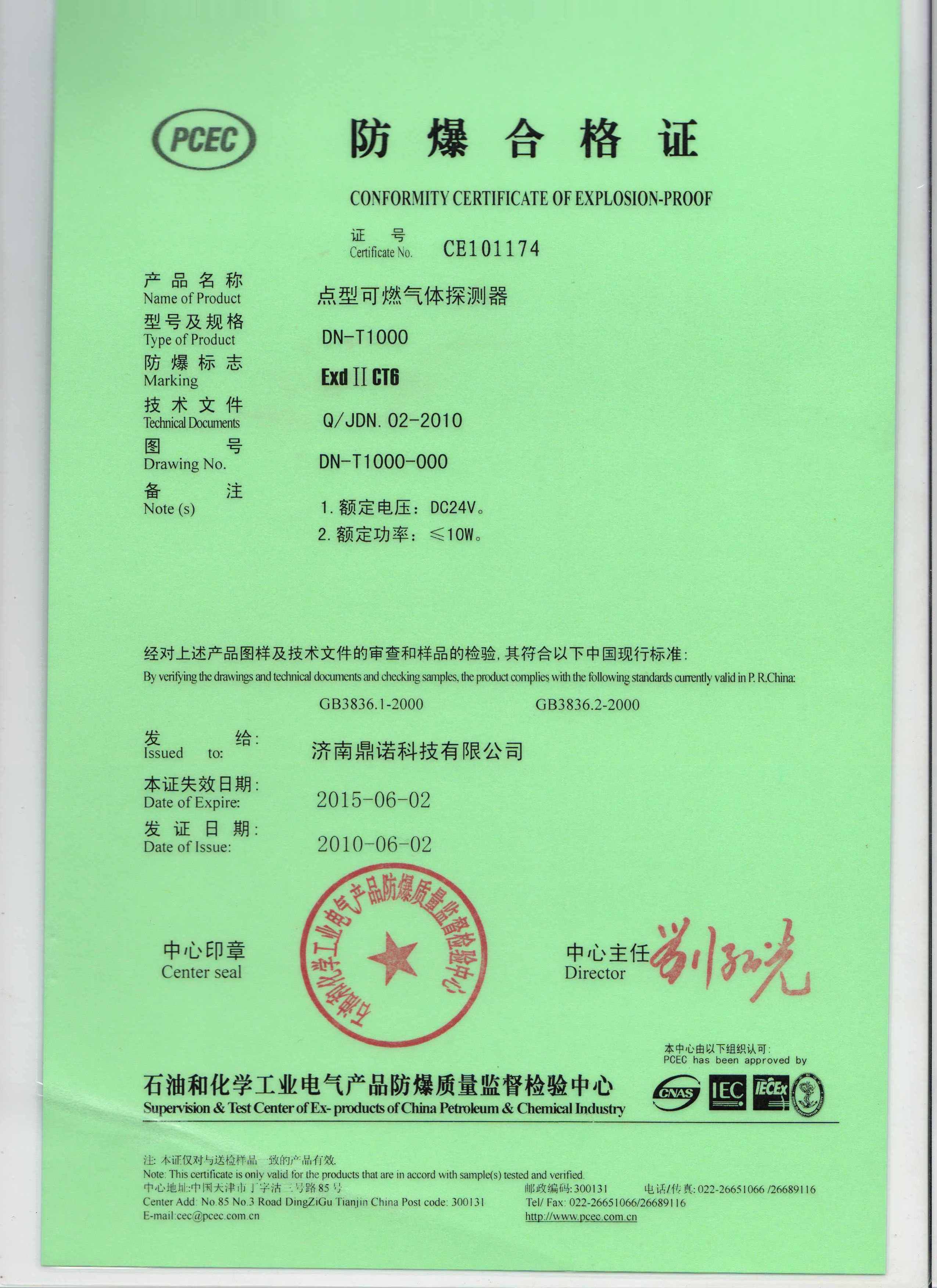 DN-T2000防爆合格证