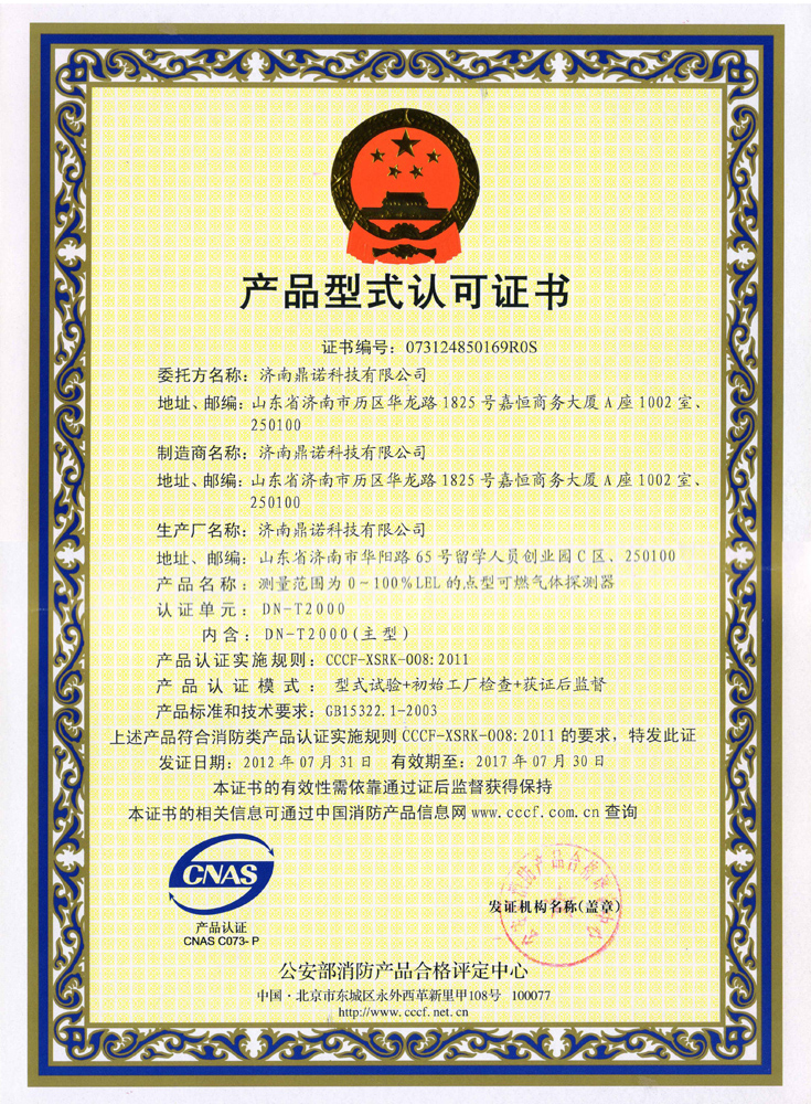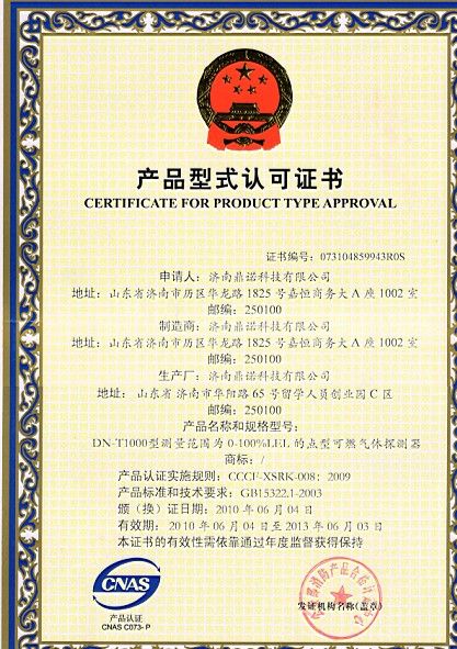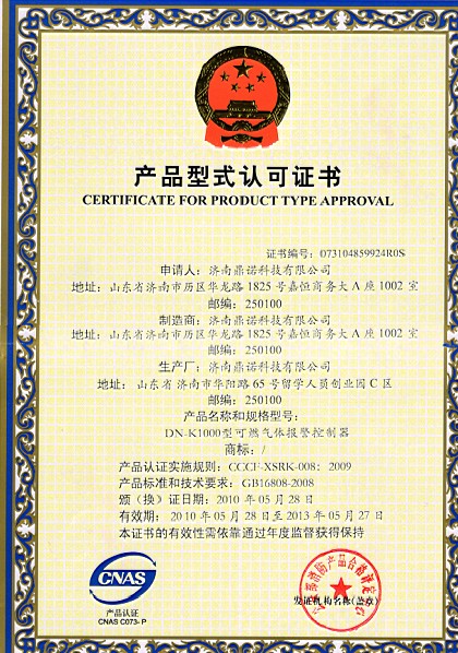 DN-T1000形式认可证书