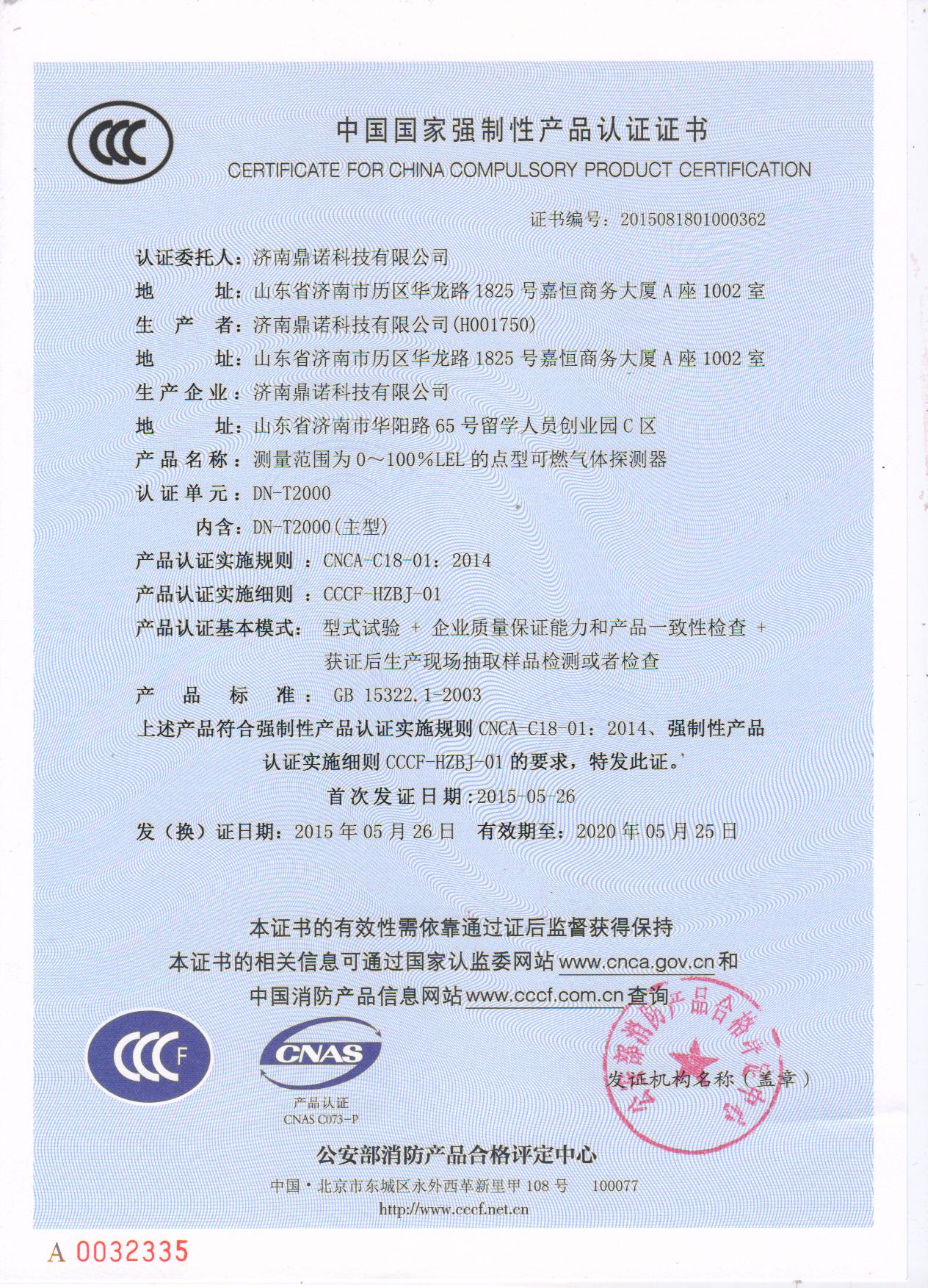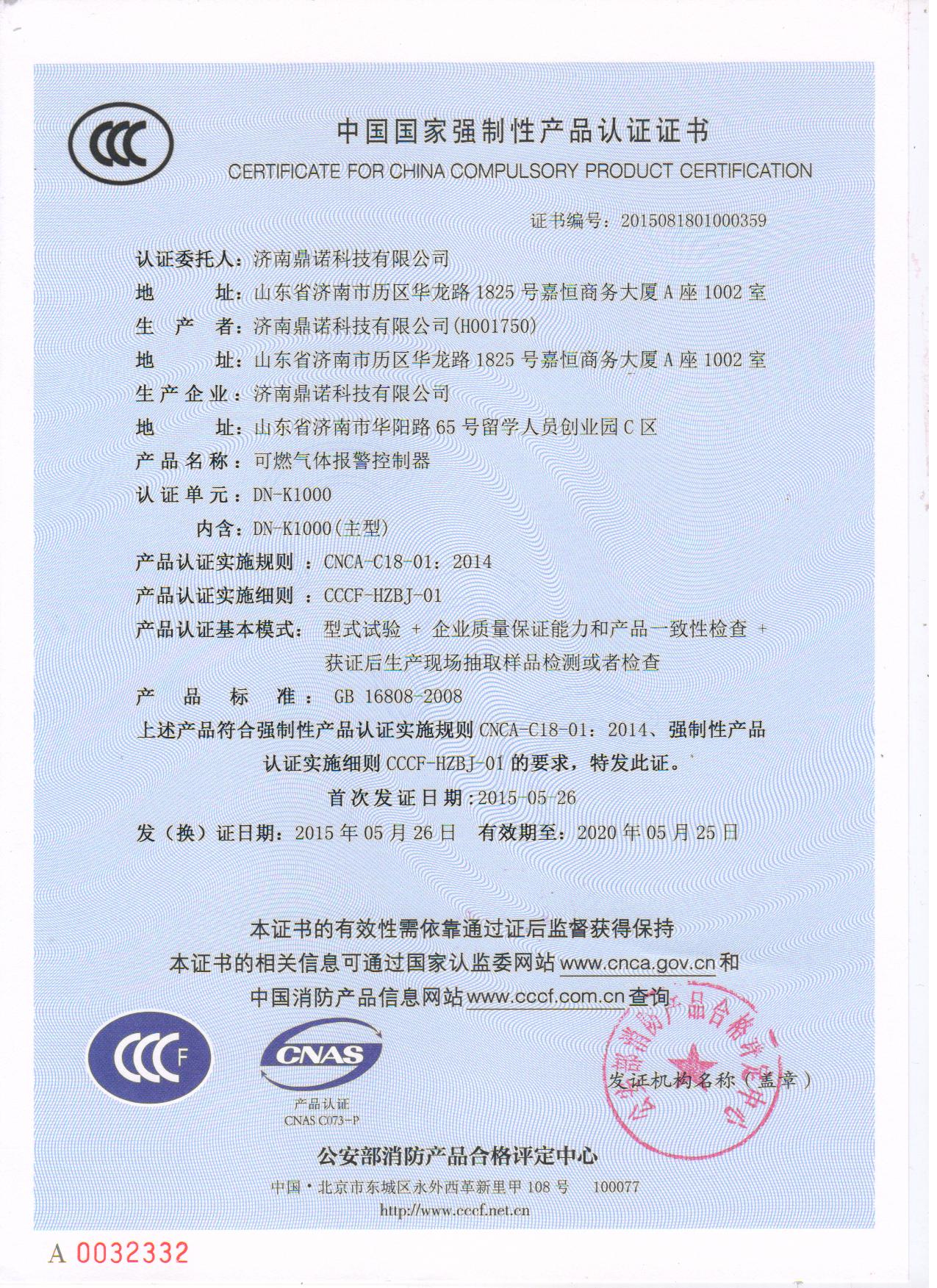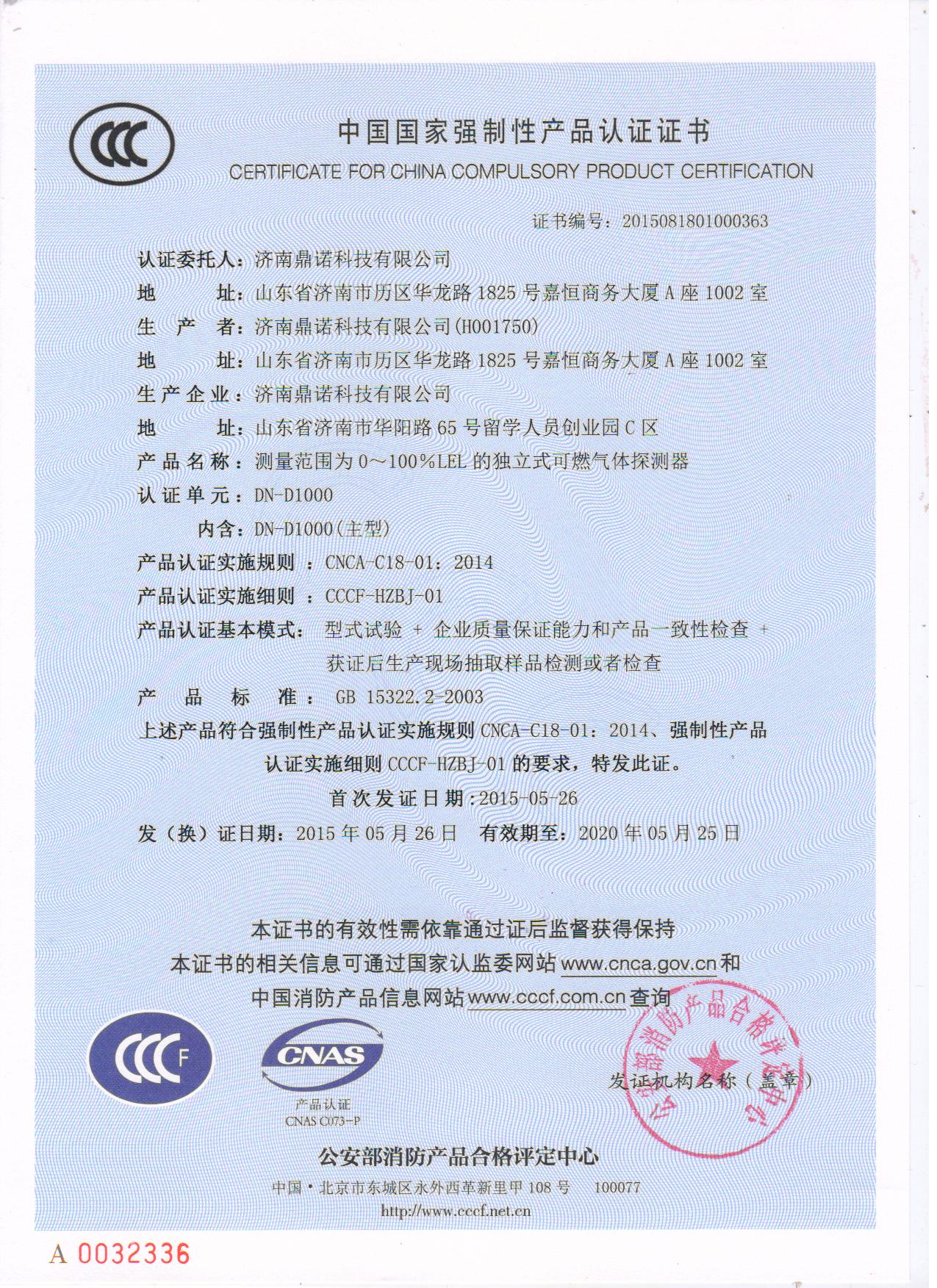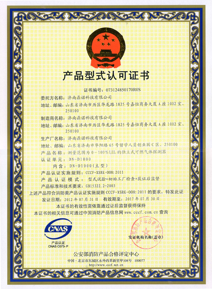 DN-D1000家用报警器CCC证书